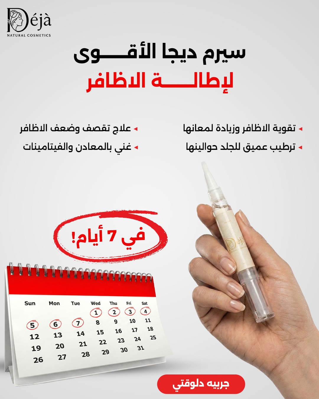 يمكنكِ البدء بملاحظة النتائج خلال أول 7 أيام من الاستخدام — ستلاحظين فرقًا في الطول وقوة الأظافر.